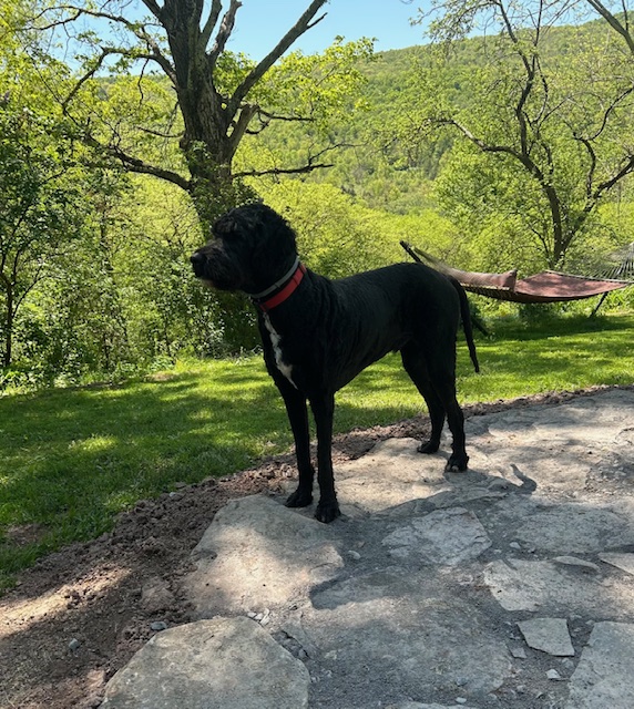 Here he is – Diego Lou Mueller – in all his glory, hair freshly cut, the trauma of the cut and shave almost recovered from completely (he is very sensitive where his hair is concerned). These photos are actually from about a month ago, before the heat really settles in, even in these cool – blessedly so – mountains. He’s such a good boy (mostly). During the spring, when the windows are open at LAST to the perfectly glorious air, he can be a little over-zealous about strange noises in the night, real or imagined. Coyotes howling? No response from our hero. But a sound only he can hear? Oh yes, that gets him going. He does not bite, but lemme tell you – his bark is a boom, especially when his momma has a headache, as she does today. The little dear… 😉